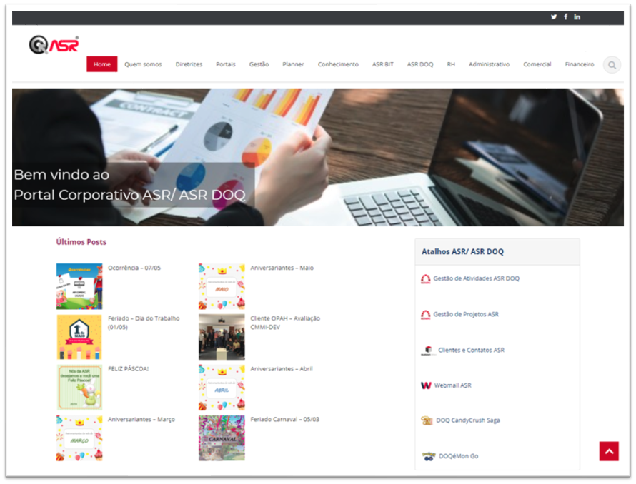 Além dos Portais específicos de Processos e Sistemas, a ASR DOQ também elabora Portais Corporativos na plataforma PGCON, com diversas informações da empresa. Estes portais podem ou não ser integrados aos de Processos e Sistemas.